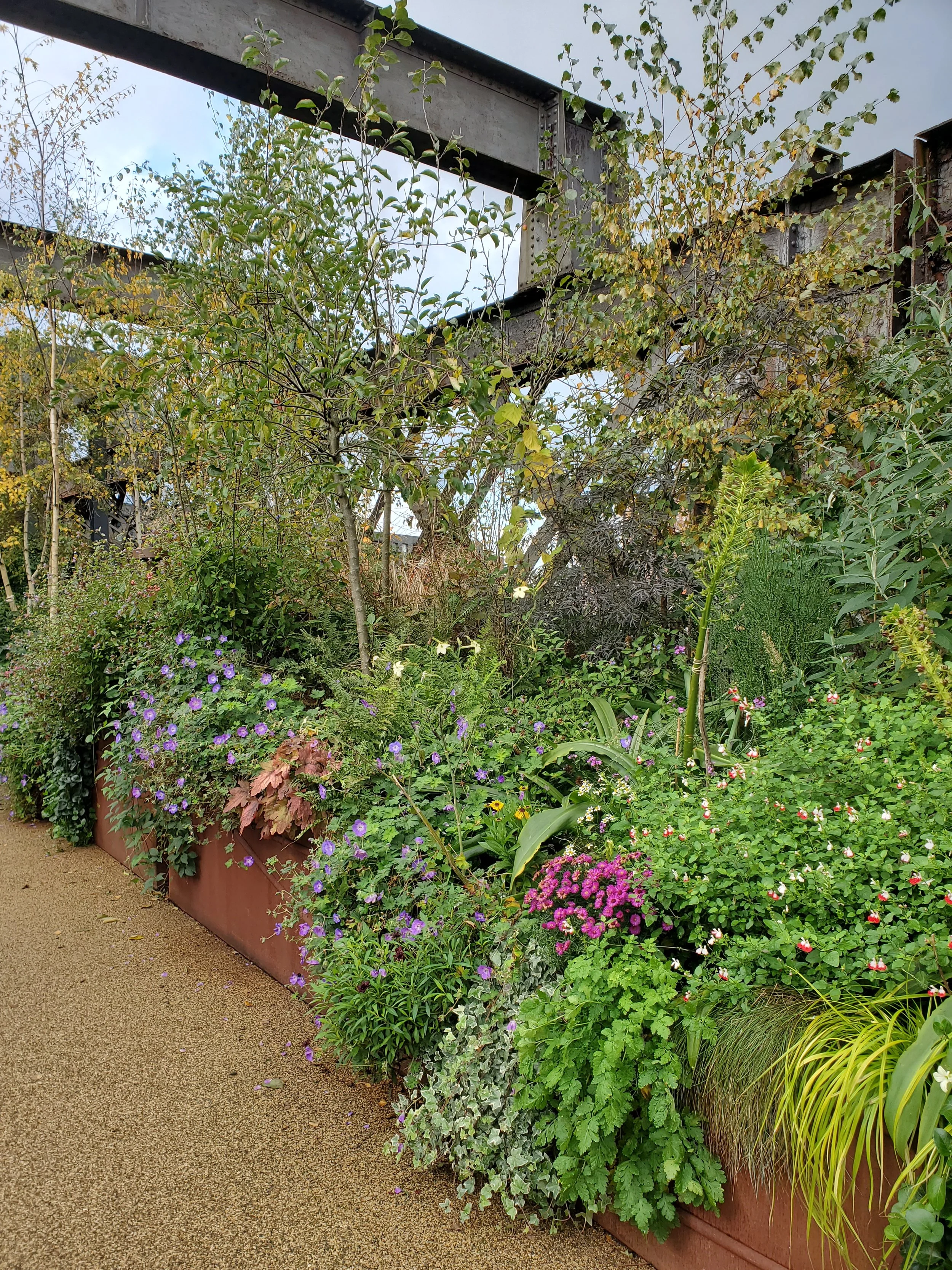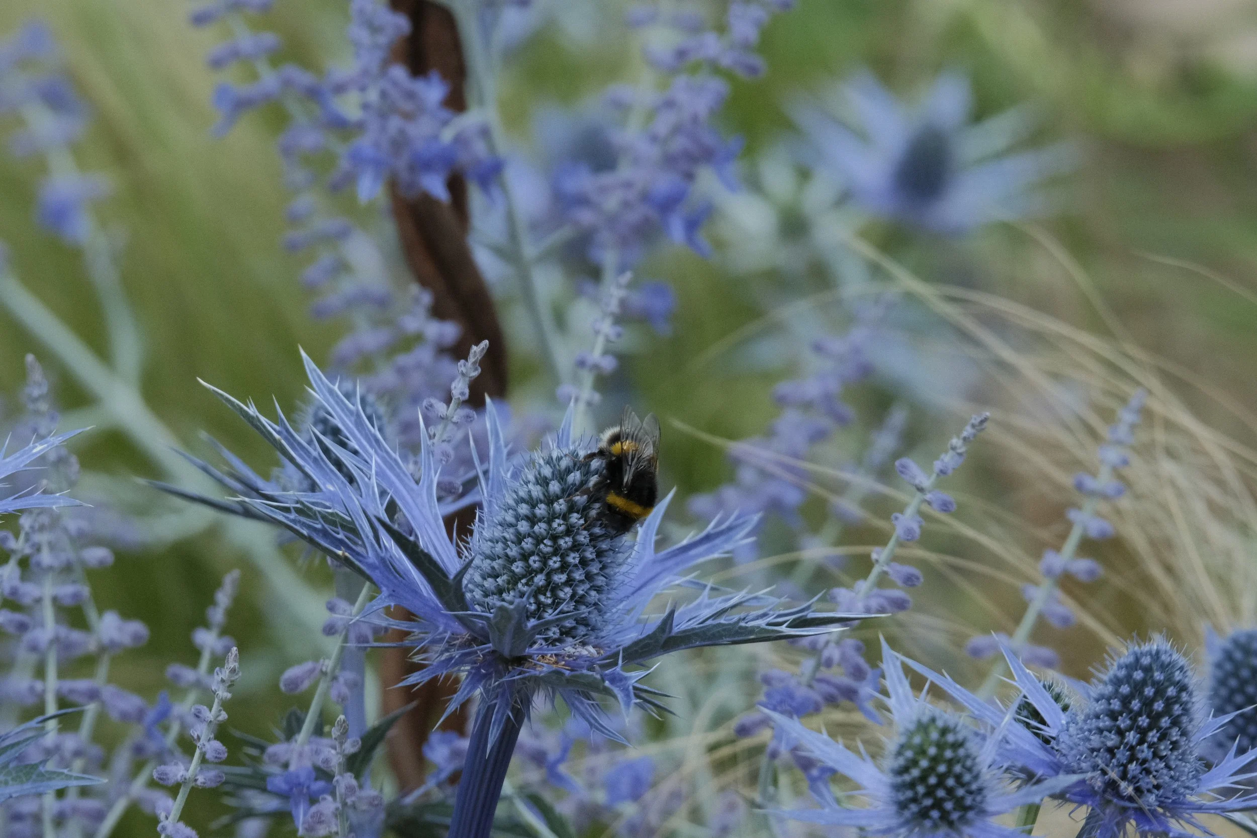 My designs are also motivated by practical considerations; as a keen gardener myself, I know how important it is for a space to function both practically and aesthetically. I take great pride in my allotment, growing the stalwarts as well as trying out more unusual vegetables. I practise organic and no-dig methods to protect and nurture the soil biodiversity, whilst flowers and even (some!) weeds are welcomed to provide a haven for pollinators and cover for the local frog population. My small, urban garden is also bursting with plants, and I have been delighted to witness an increase in the number and diversity of insects over the years.